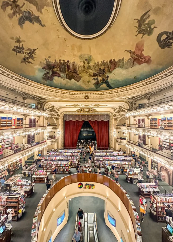 According to The Guardian, El Ateneo Grand Splendid is the second-best bookstore in the world, making it an absolute must among Buenos Aires photo spots. The venue retains its original theater charm, with frescoes, elegant balconies, and a stage now used as a cozy café.