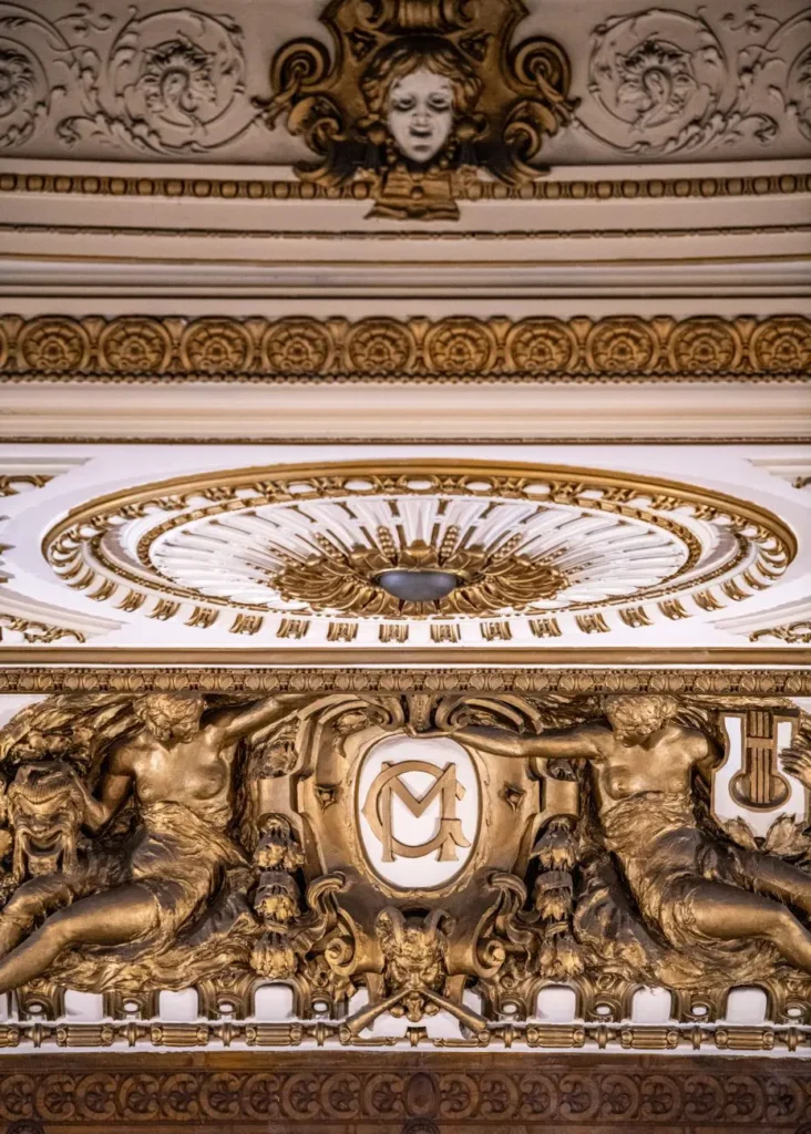 The main concert hall is breathtaking, with its horseshoe shape that enhances sound quality, making it famous for its acoustics. The design features gold leaf, red velvet drapes, and grand crystal chandeliers. It can seat over 2,400 guests and feels like stepping back into an era of elegance.