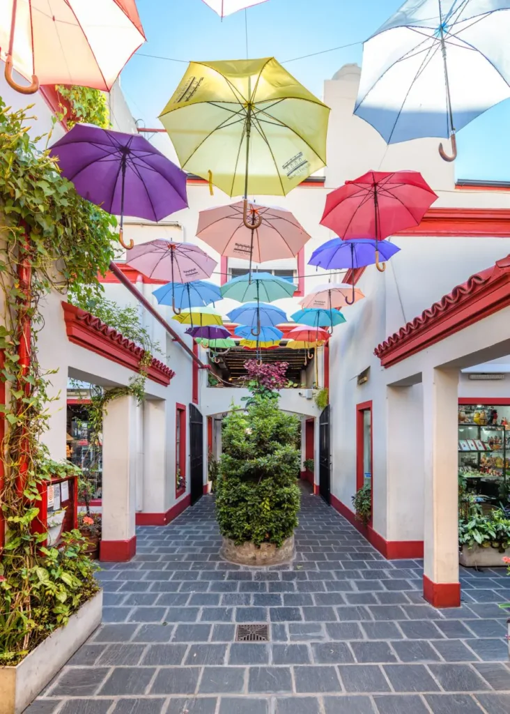 What I love about this place is the atmosphere. There’s a ceiling of colorful umbrellas overhead, and the space feels quiet even though you’re only a few steps from Plaza Dorrego. Inside, you’ll find artisan jewelry, antiques, and handmade goods.