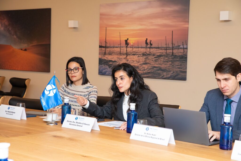 The Secretary General of UN Tourism, Shaikha Al Nowais, received today at the headquarters of the Organization the visit of the Minister of Production, Foreign Trade, Investment and Fisheries of Ecuador, Luis Alberto Jaramillo, to advance in strategic priorities of the sector.
